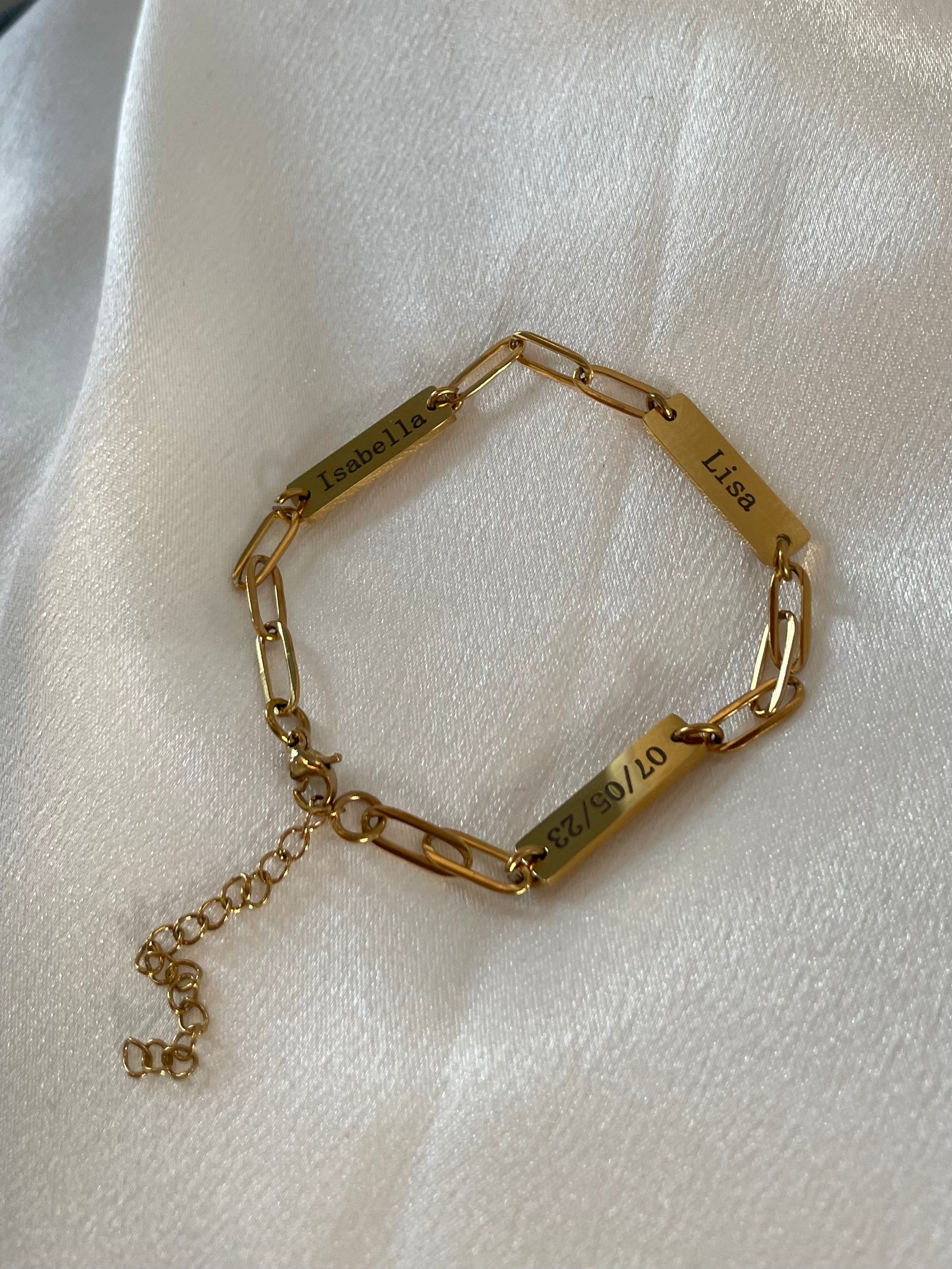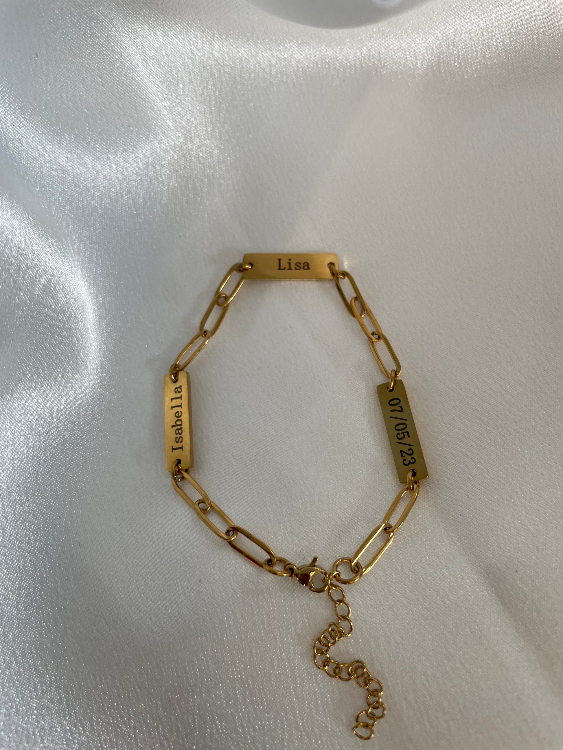 This custom Engraved bracelet is a heartfelt piece designed to celebrate the people who mean the most to you. The rectangular pendants can be engraved with a personal message, making it a perfect gift for a loved one or a special way to express yourself, It allows you to customize it with names, creating a truly special keepsake. Whether it represents children, parents, or loved ones
