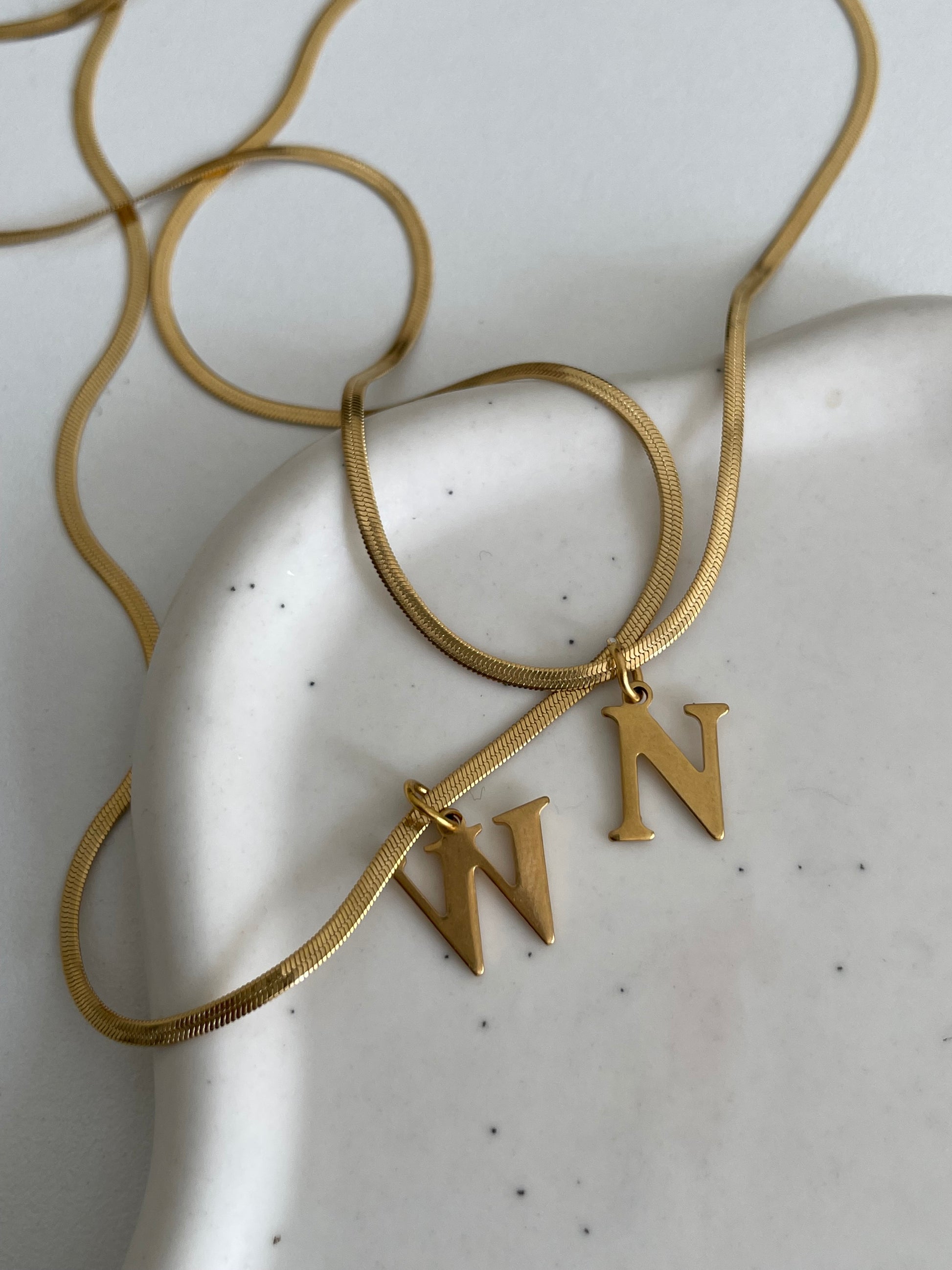 Add a personalized touch to your jewelry collection with our snake initial necklace. The perfect gift idea for a boyfriend to personalize his initial to give to his girlfriend or for a boyfriend to wear his lover's initial.